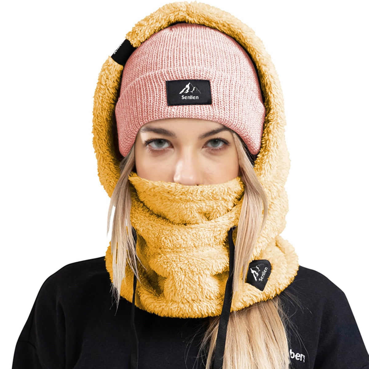 • This extremely lightweight sherpa hood ski mask made of 100% fleece polyester fabric, cozy stretchable fleece, will keep you covered with comfortable, breathable material whenever you put it on